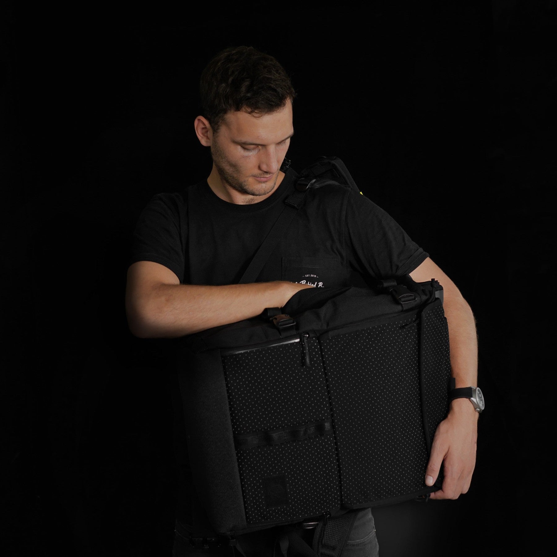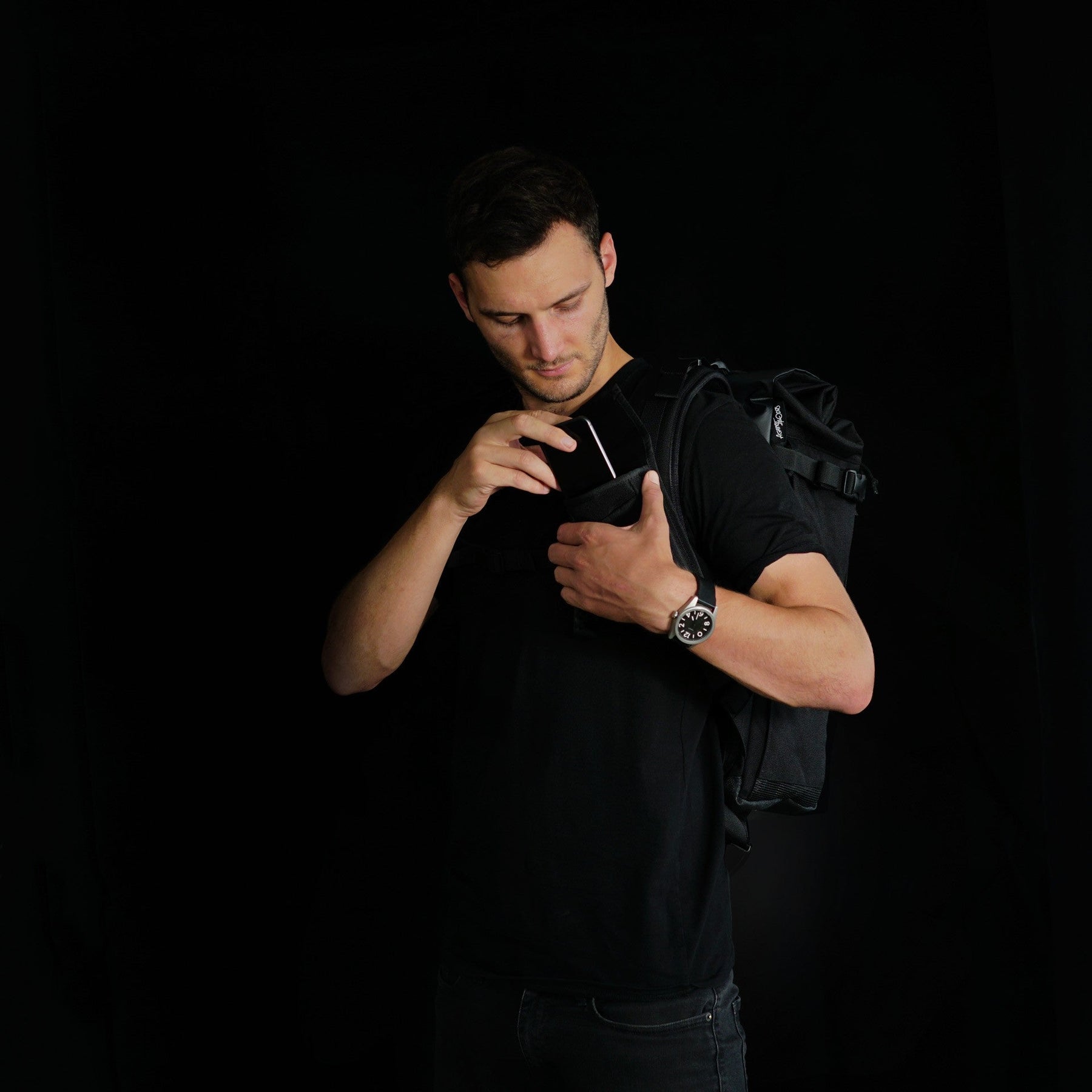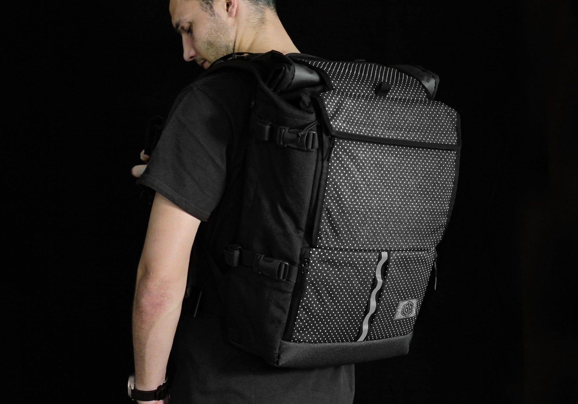 Our mantra has always been "when in doubt, go all black". It's the colorway that is most unsuspecting, inconspicuous, fits just about any occasion, and not to mention badass. Yet, at night, and on the road where safety matters most, the whole bag turns super bright due to thousands of embedded micro retroreflective dots that sends light, back to its source. Other parts also don't go unchecked, details such as the webbings and trims are treated with 3M® Black reflective finish. You don't have to dress like a road-worker in order to be visible at night. The Eclipse series does not sacrifice form for the sake of feature, on the contrary, it elevates the aesthetic by making a seemingly stealthy bag, highly functional.