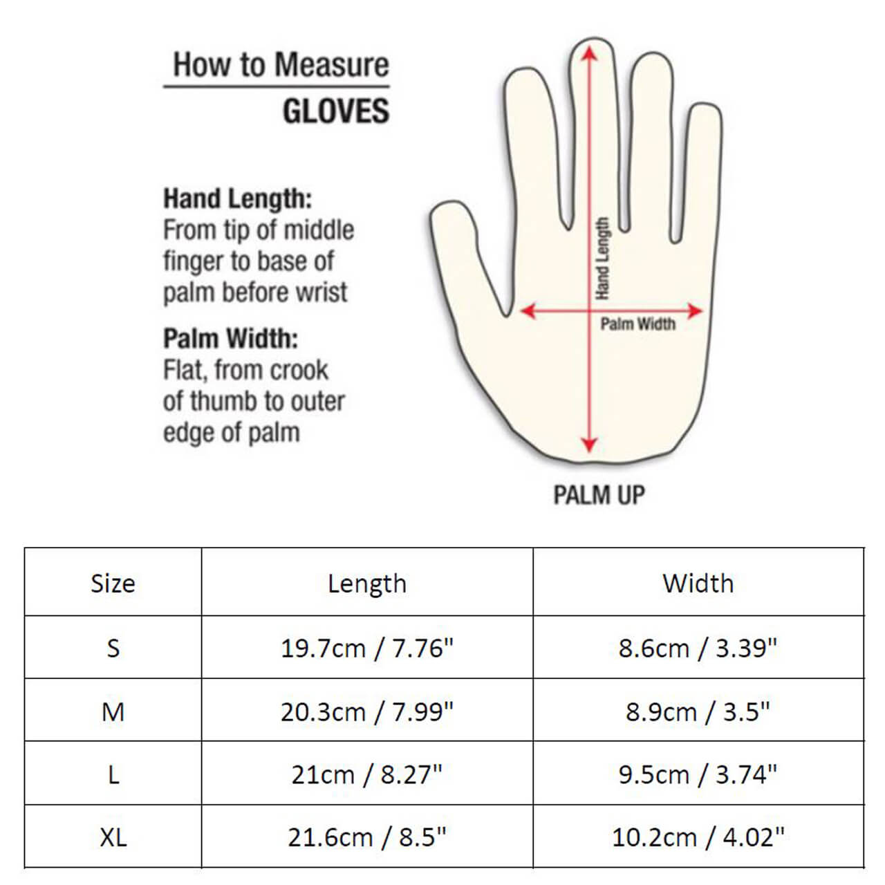 - Four way stretch back hand material with synthetic leather palm