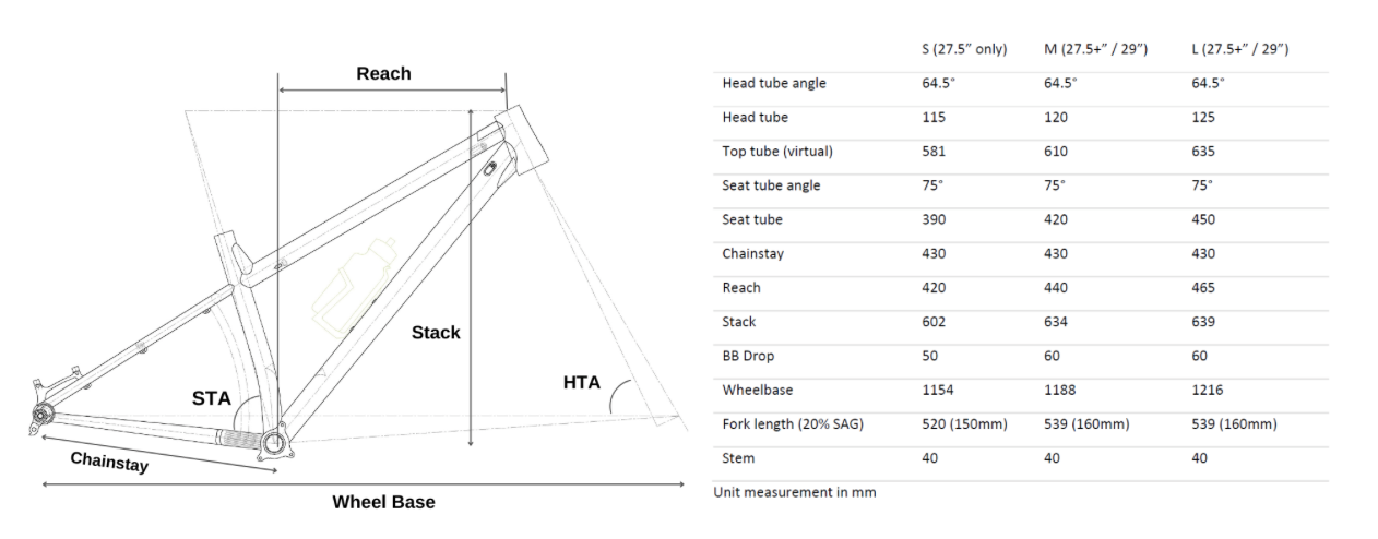 M and L frame size is designed based on 160mm front suspension travel 20% sag.