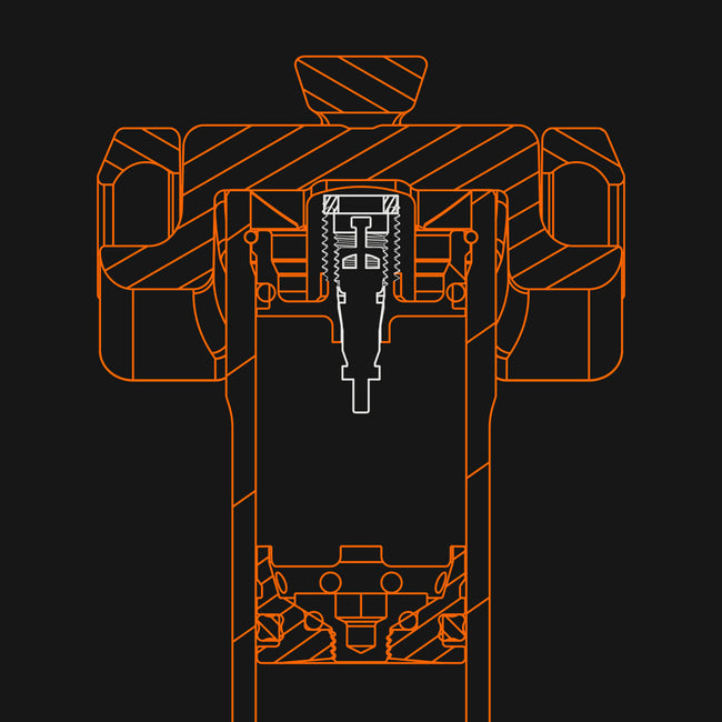 Riders can recharge and adjust air pressure through a Schrader valve under the seat clamps. A metal valve cap with O-ring ensures zero air leaks through the valve.