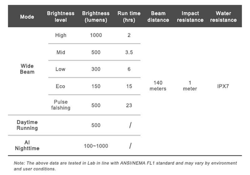 - AI Learning mode for nighttime routine riding with auto on-off and light sensor for auto brightness adjusting to maximize the efficiency.