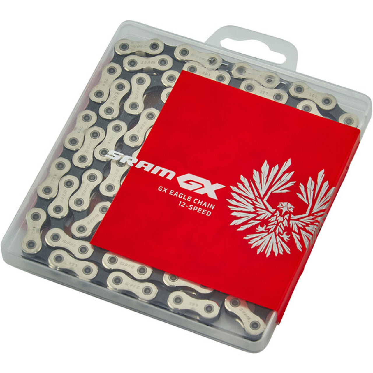 The GX Eagle chain is designed with SRAM's Eagle geometry, the GX Eagle chain features solid pin construction, Eagle PowerLock and smooth, efficient shifting that you can count on every time out.